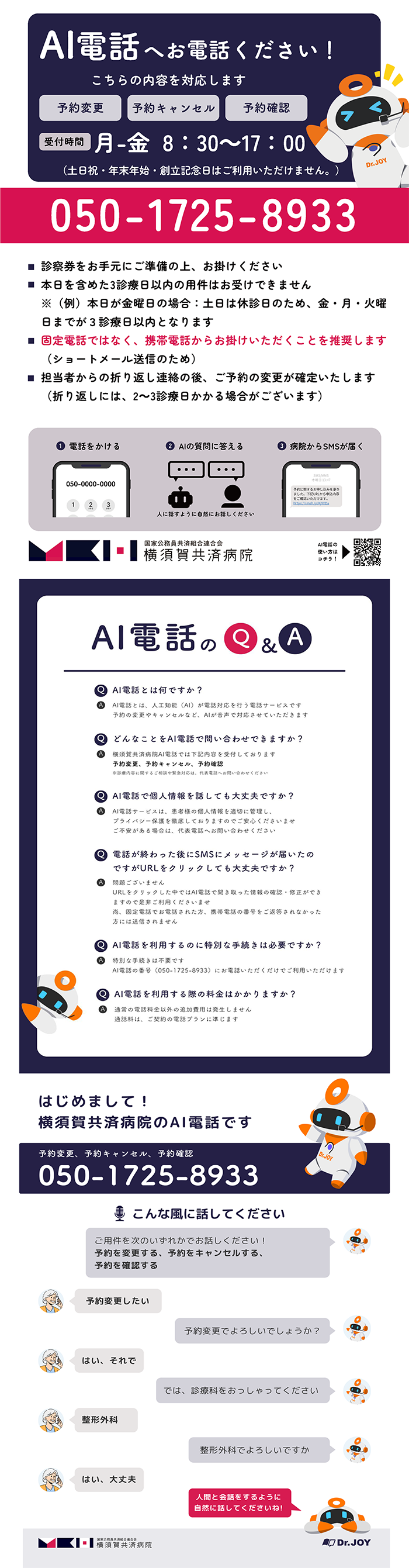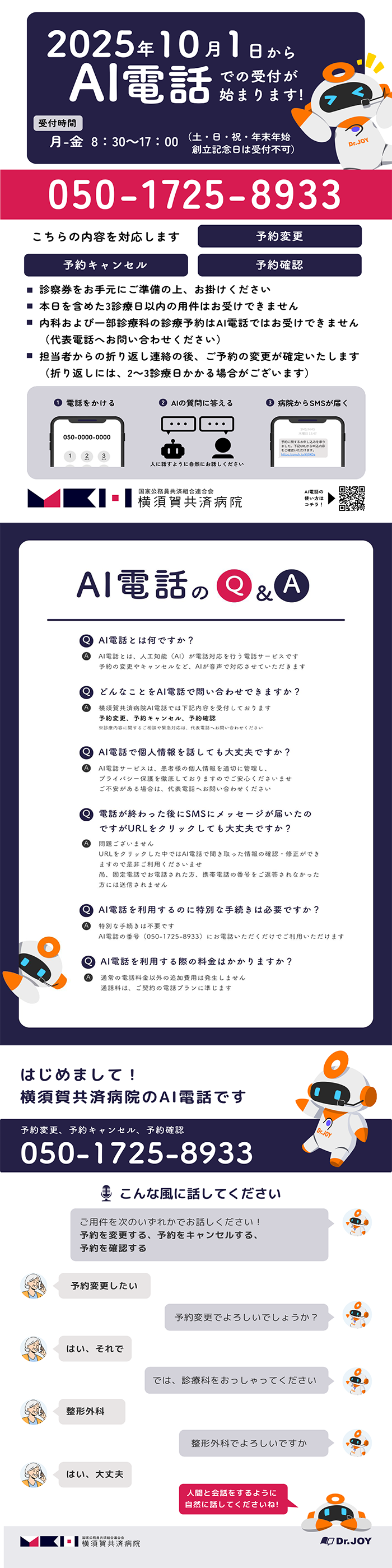 > 患者さんへのお知らせ > 2025年10月1日からAI電話での受付が始まります。