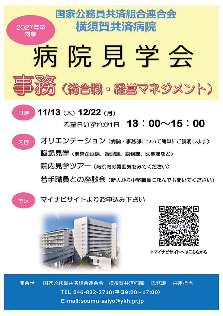 > 事務(事務・経営マネジメント)病院見学会【2027年卒学生対象】